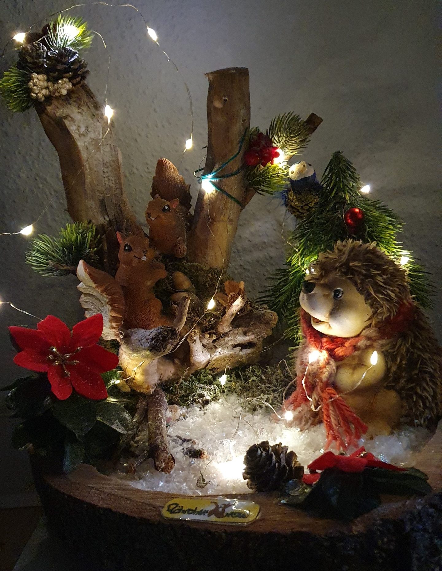 Durchmesser Platte : ca.30cm Höhe : ca.25cmmit LED- Licht zum zuschalten an der Rückseite